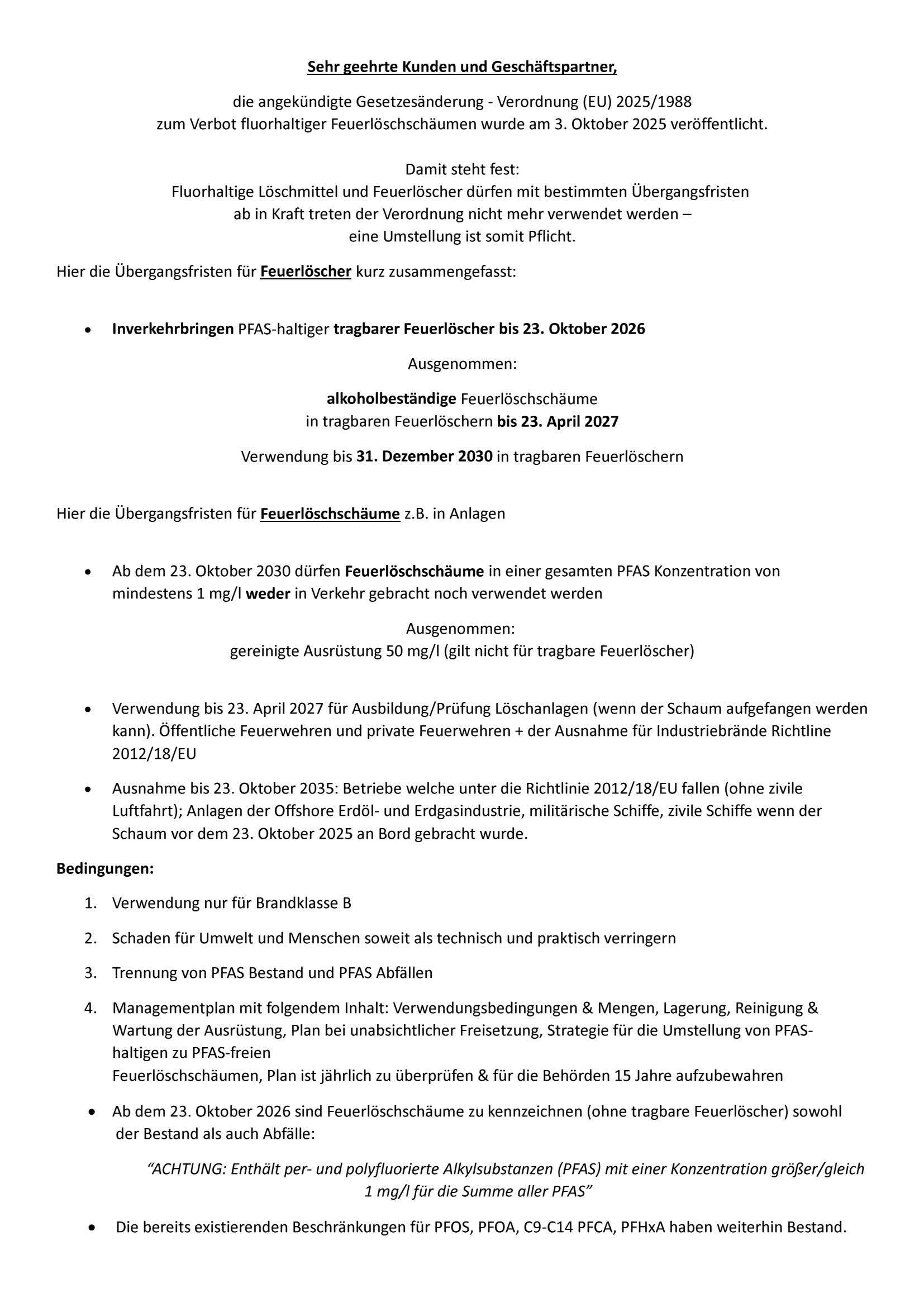 der sich auf die Beschränkung von PFAS in Feuerlöschschaum bezieht.